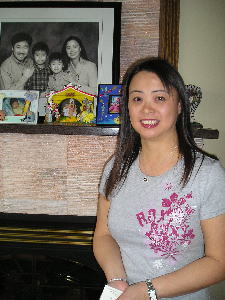 ![]() ホストマザーのLingさん(看護婦)です。 左がご家族の写真。 ご主人と息子2人(1995年生と1999年生)の家族 |