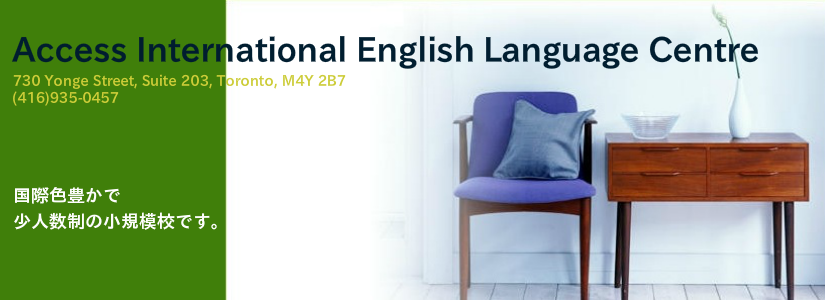 Access Internationalは、学生が集まるトロントのダウンタウン、Bloor-Yonge駅近くに位置する小規模校です。この学校の特徴は、ヨーロッパや南米の留学生が多く、国際色が豊かにもかかわらず、1クラスの人数は最大8人の少人数制が取られている点。