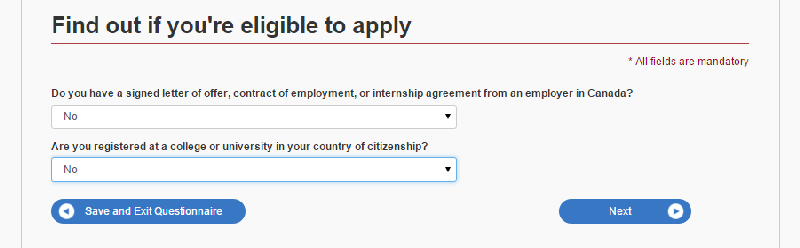 (上)カナダで仕事の内定等があるか、(下)日本で大学生、短大生かどうか |