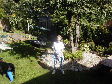 ![]() 裏庭にて、マザーのKarenさん。 娘と息子さんは独立して、 頻繁に遊びに帰ってきます。 |