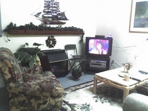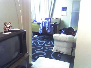 ![]() リビングです。PCもありますが、英語です。 |