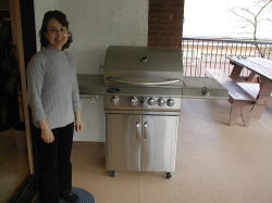 ![]() マザーのElenaさんです、 家族構成はファーザーと 二人の息子(20歳、17歳)4人です。 写真はBBQセットの前にて。 |