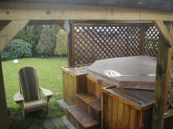 ![]() バックヤードにあるジャクジー。 夏場の夜はハウスパーテイ−が楽しみです。 |
